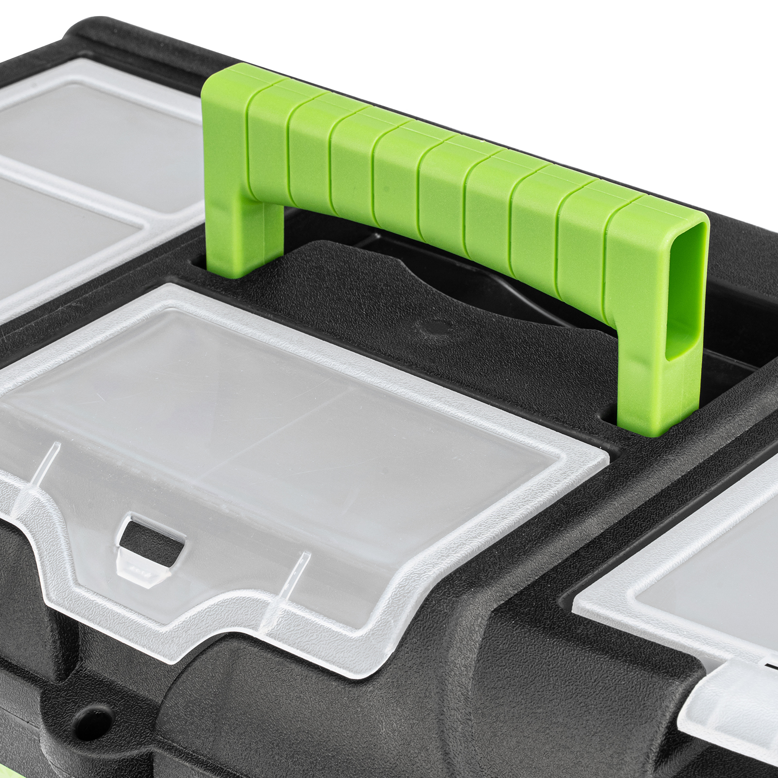 - Комфортная транспортировка — удобная рукоятка облегчает перемещение даже максимально заполненного ящика.