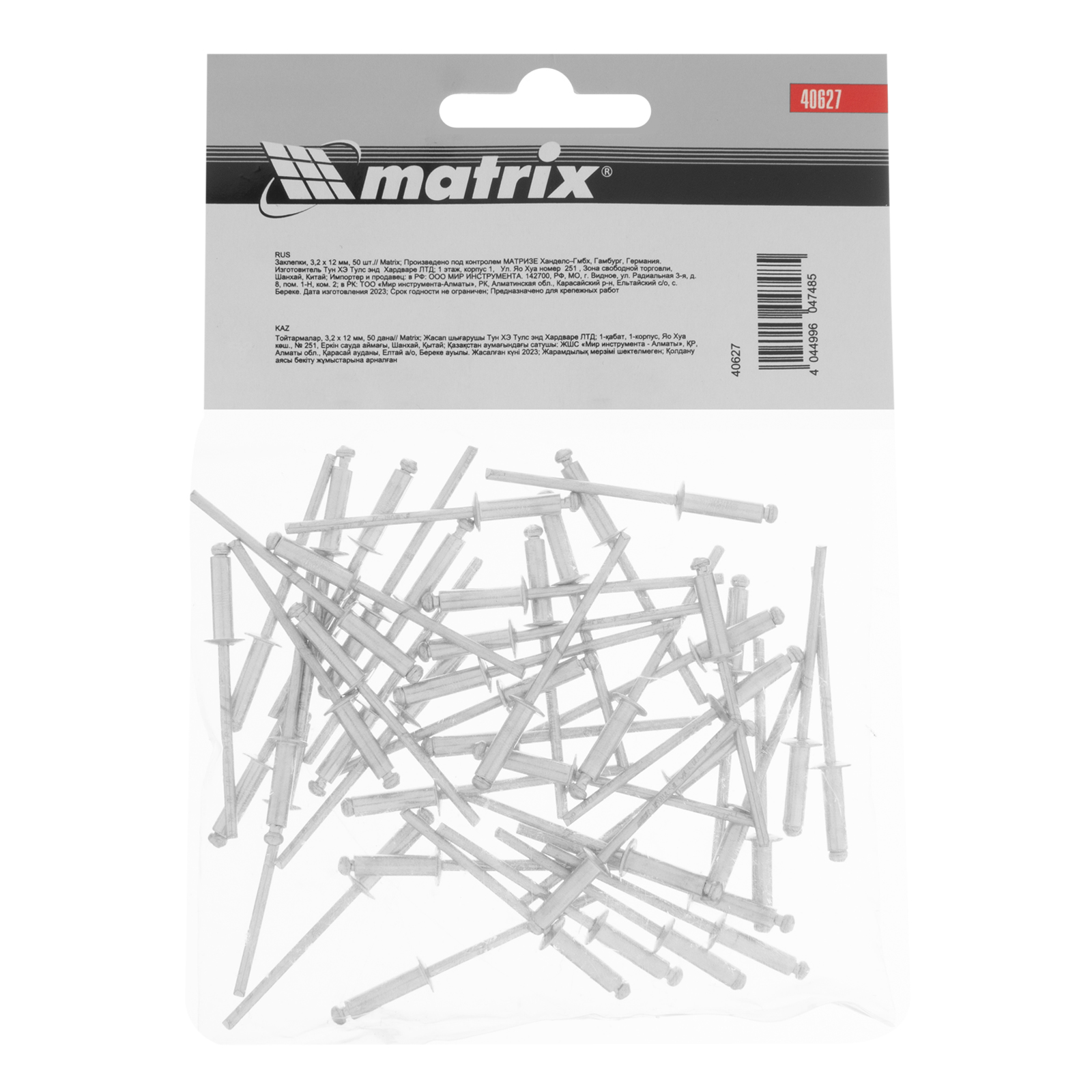 Заклепки Matrix 40627, 3,2 х 12 мм, 50 шт., предназначены для соединения листовых заготовок. Обеспечивают надежную фиксацию материалов даже при наличии доступа только с одной стороны. Используются в строительстве домов, при возведении заборов из профлиста, производстве оборудования, будут полезны в домашней мастерской.