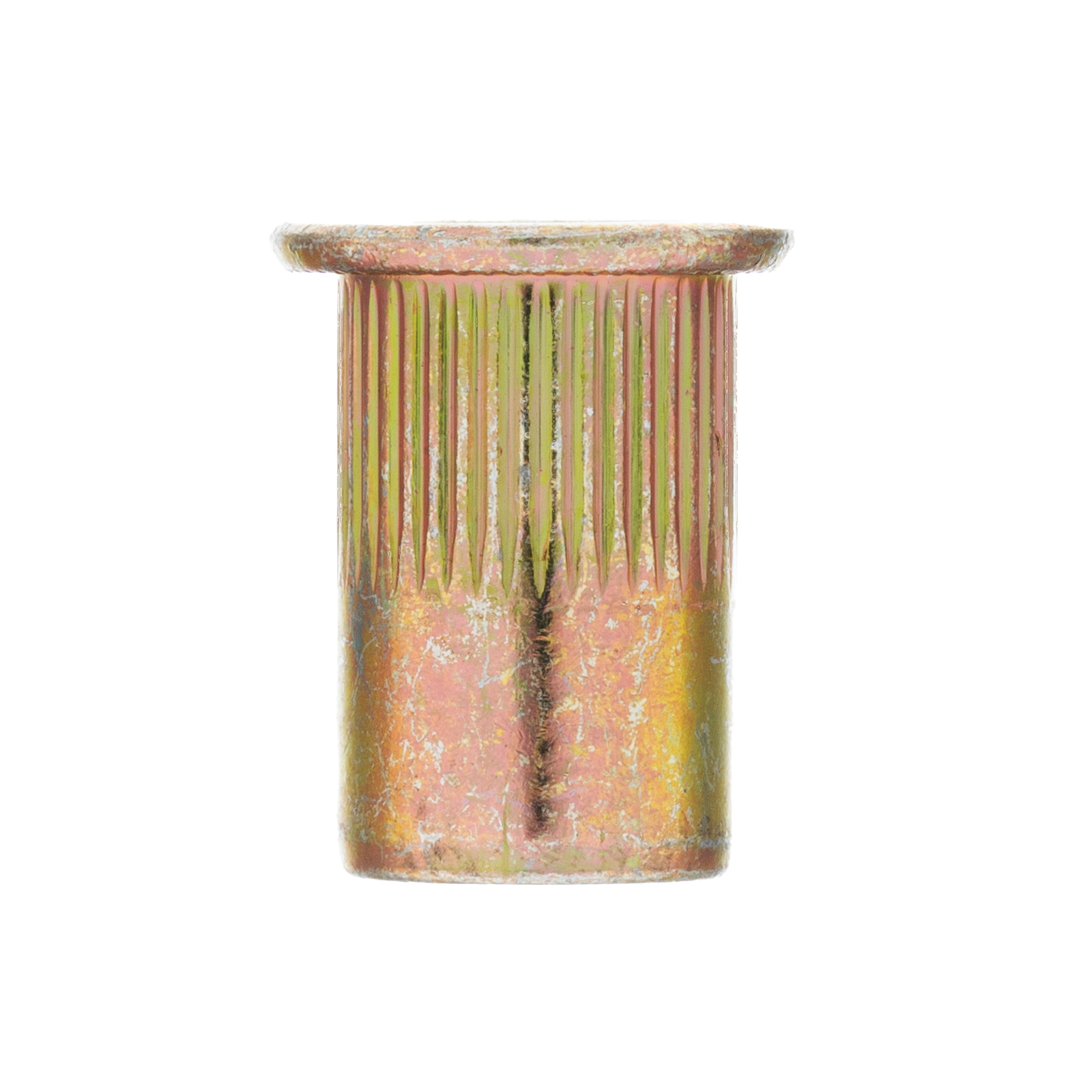 - Надежное соединение — благодаря насечкам на рабочей части заклепки неподвижно фиксируются в отверстиях, стандартный бортик увеличивает площадь прижимной поверхности.