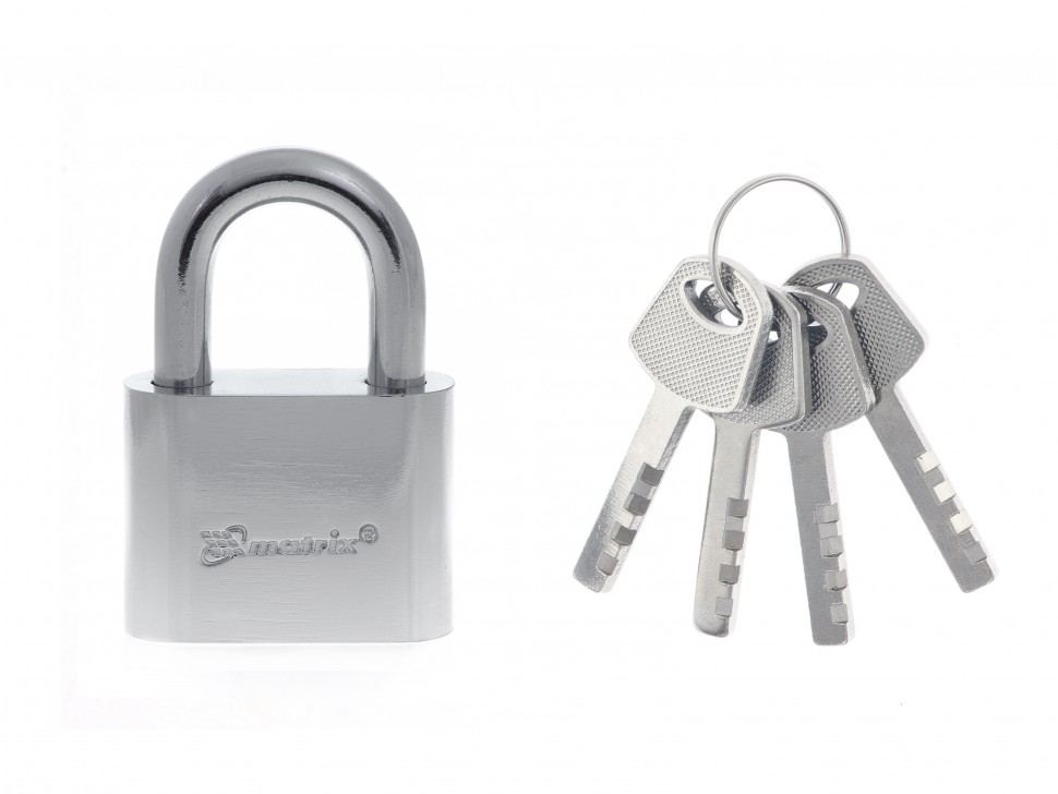 Навесной замок Matrix 91801 с хромированным покрытием, 50 мм, используется для запирания дверей в помещениях, обеспечивая защиту собственности. Его можно повесить на дверь склада, гаража, подвала и т.д. Замок навесного типа легко устанавливается на двери с помощью специальных проушин.