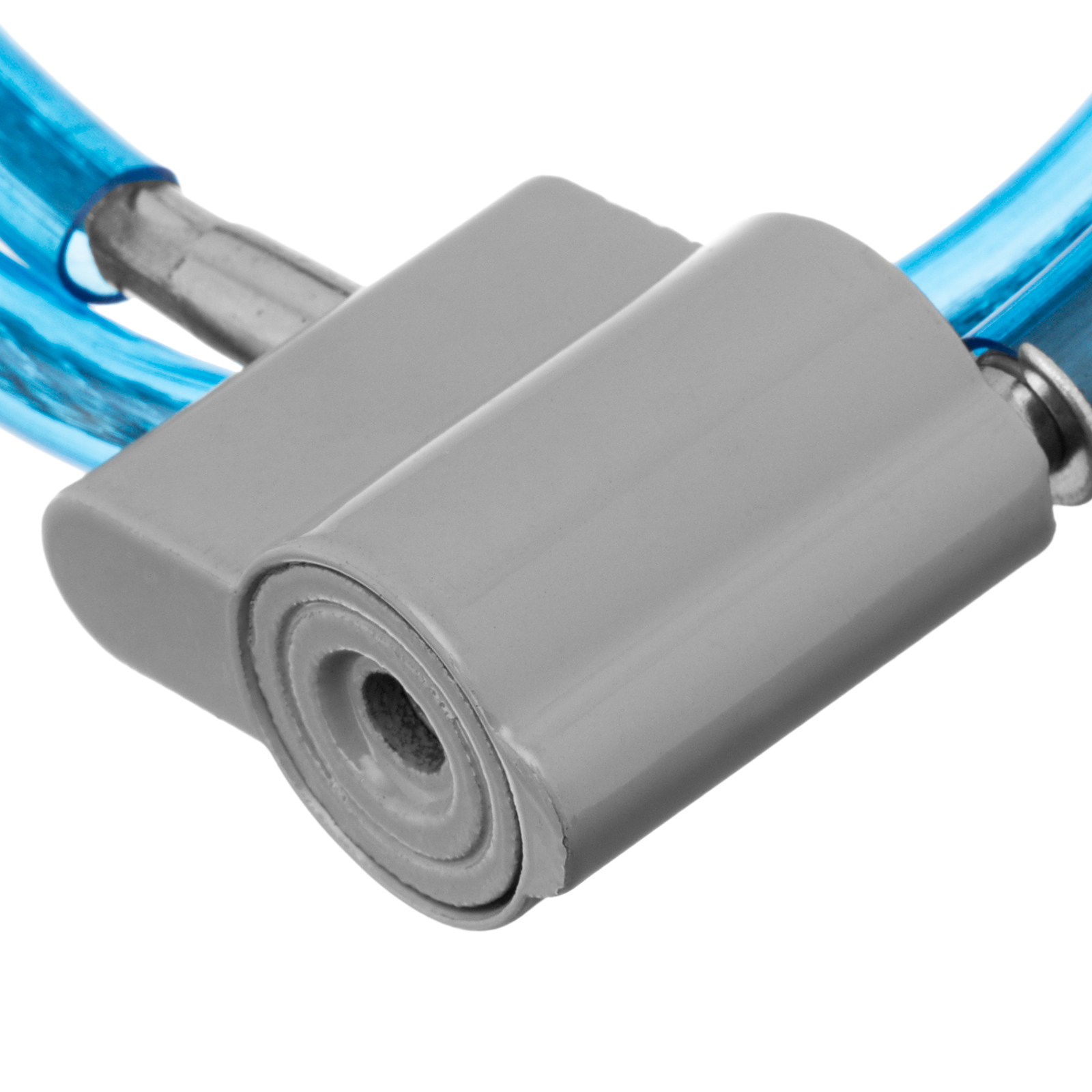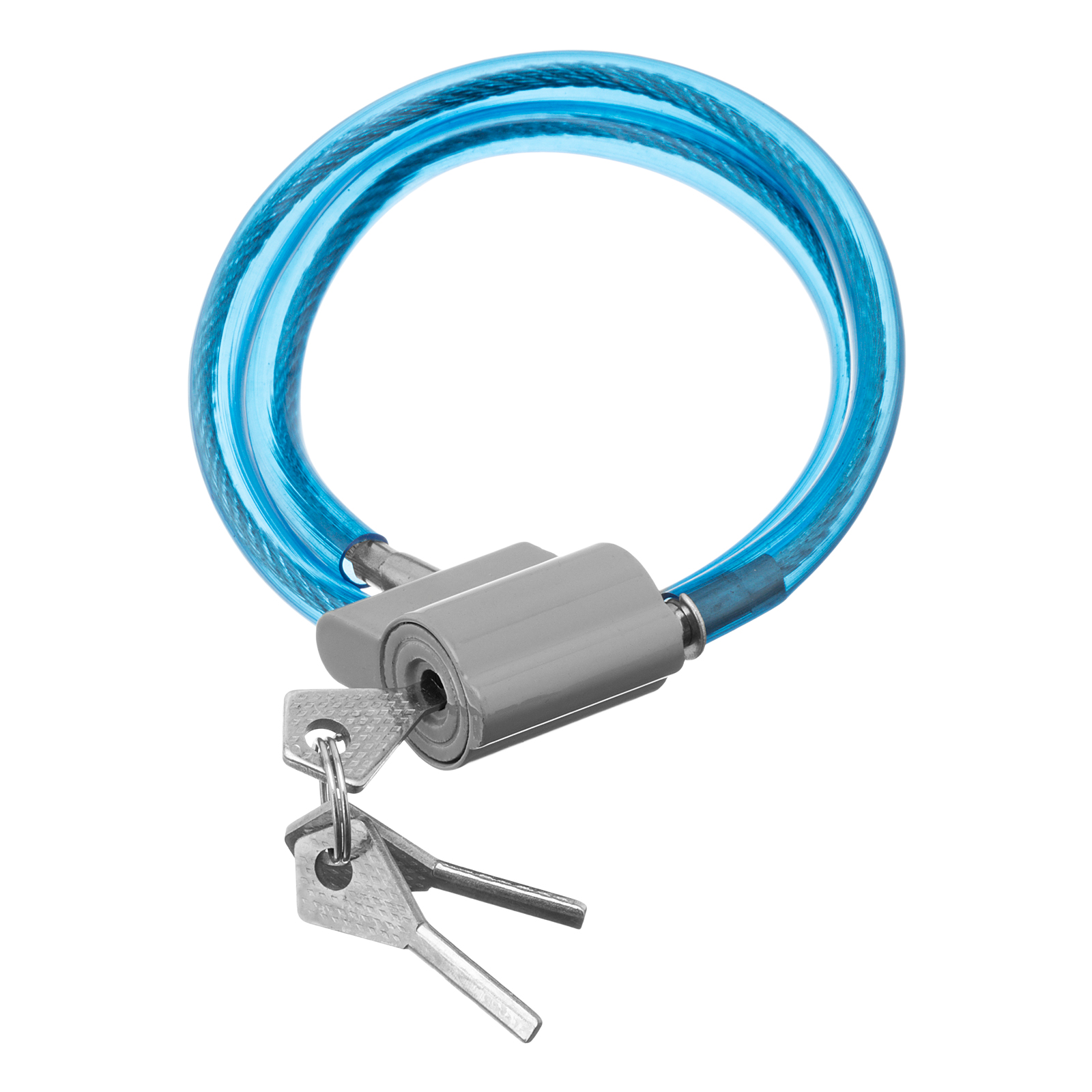 - Надежная защита — стальной изолированный трос толщиной 10 мм трудно разрезать или перекусить, дисковый механизм замка осложняет подбор отмычки.