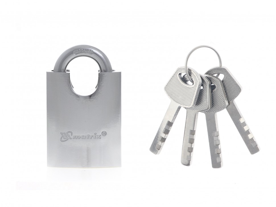Навесной замок Matrix 91804 с защищенной дужкой 50 мм используется для запирания дверей, ящиков и т.д. Он обеспечивает защиту помещений и собственности от проникновения и кражи. Монтаж замка происходит максимально просто с фиксацией на проушины и не требует специальных инструментов. Дужка спрятана в корпусе, поэтому замок сложно взломать.