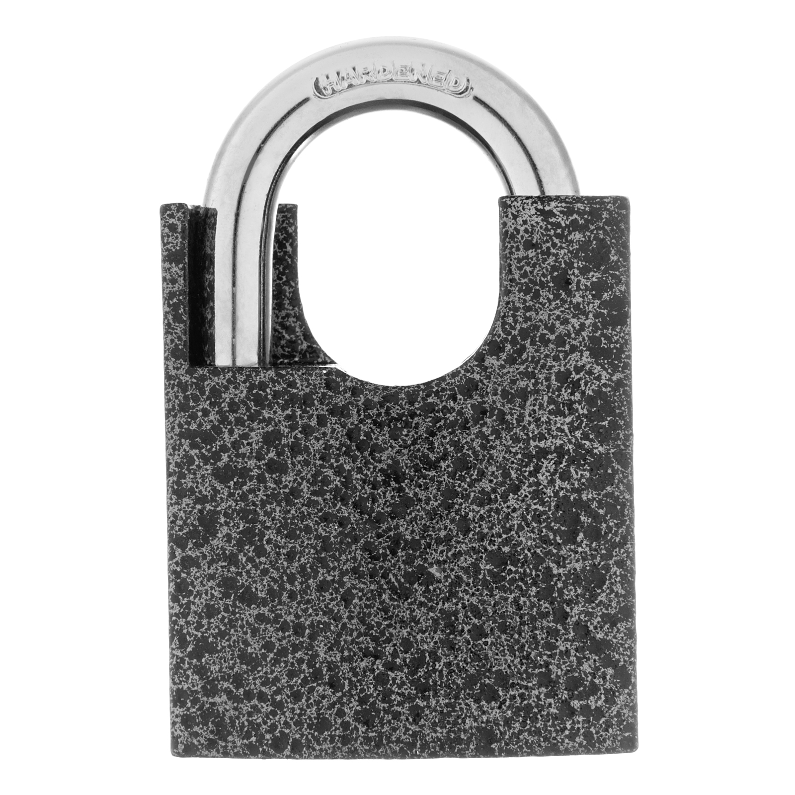 - Устойчивость к повреждениям и климатическим воздействиям — корпус выполнен из углеродистой стали и покрыт молотковой эмалью, стальная дужка хромирована.