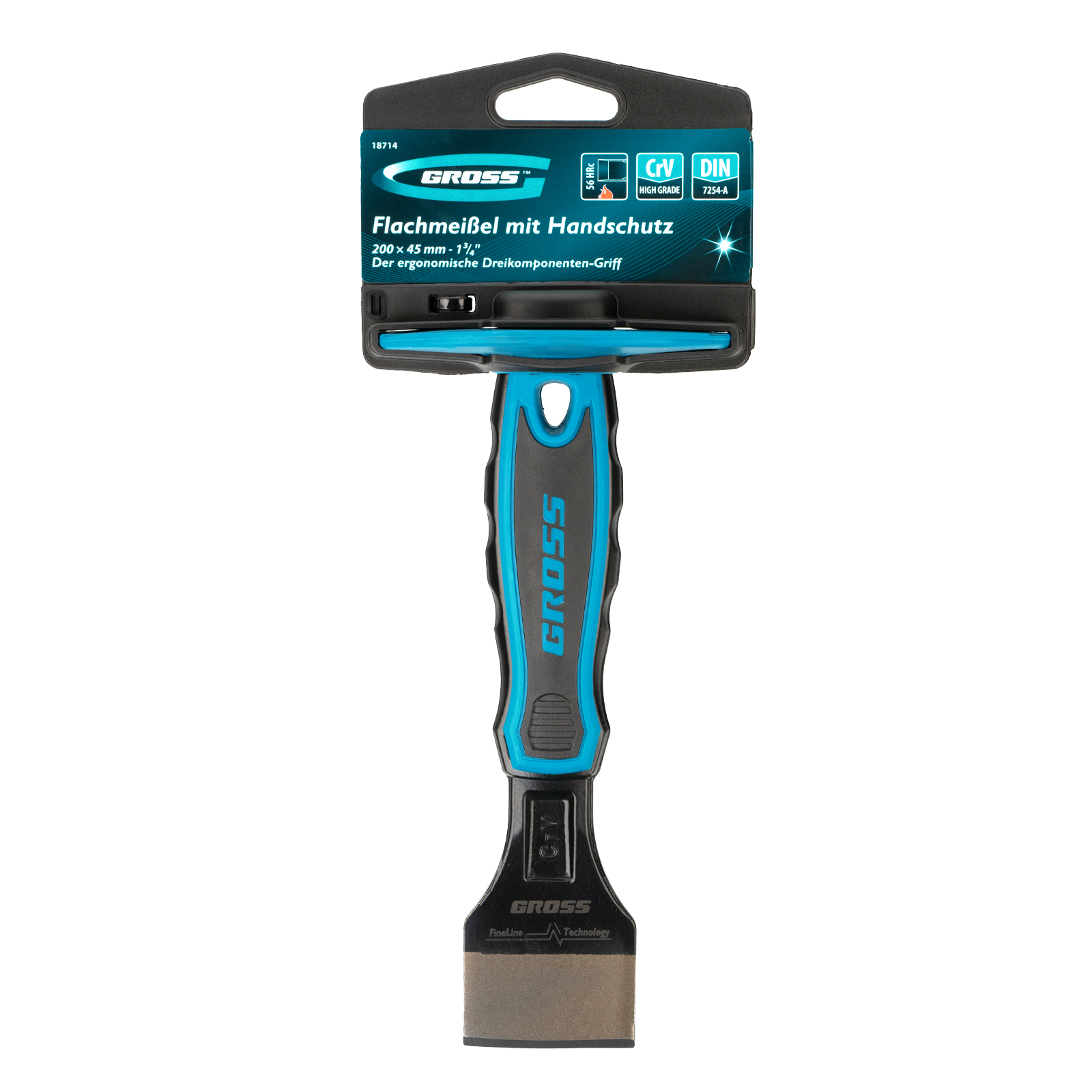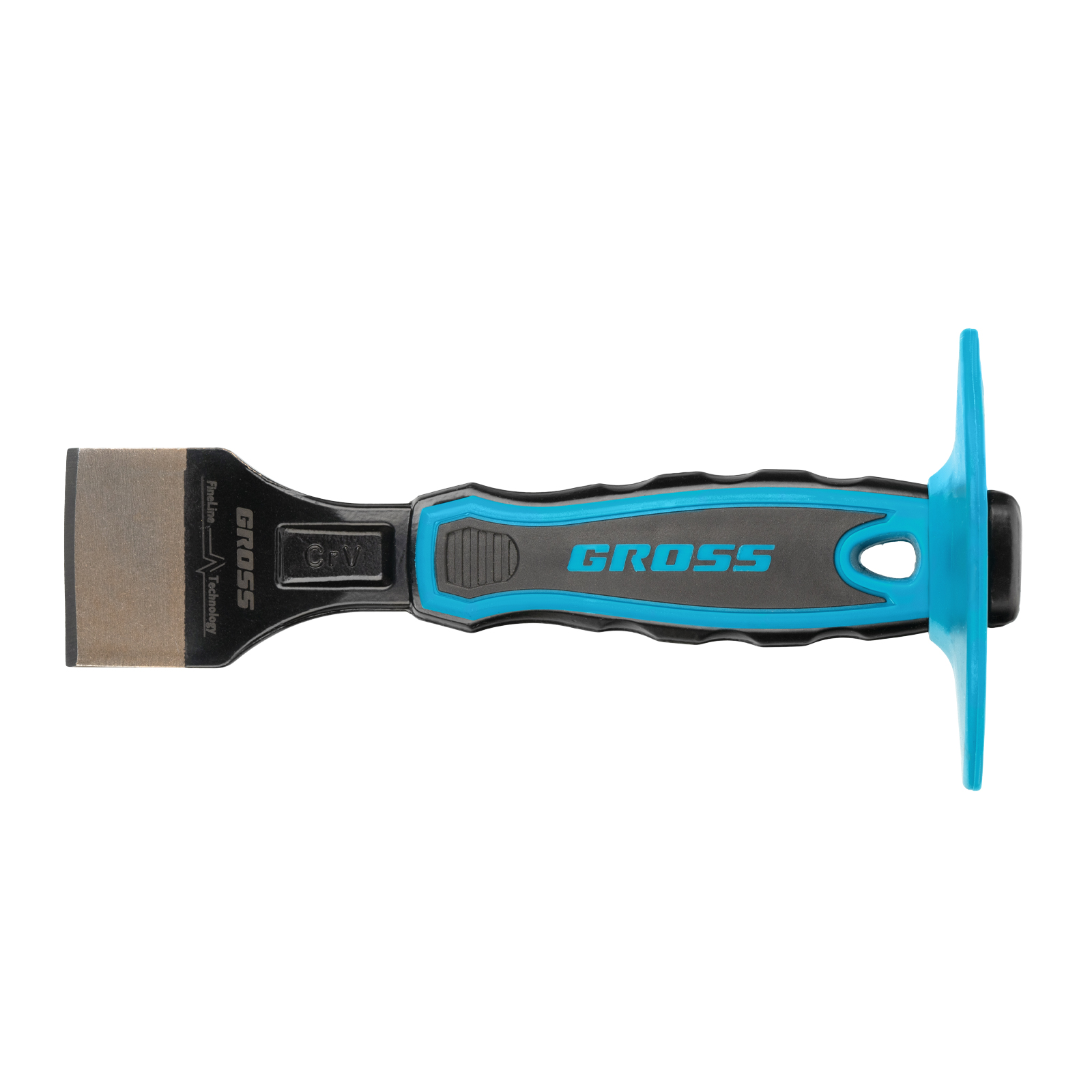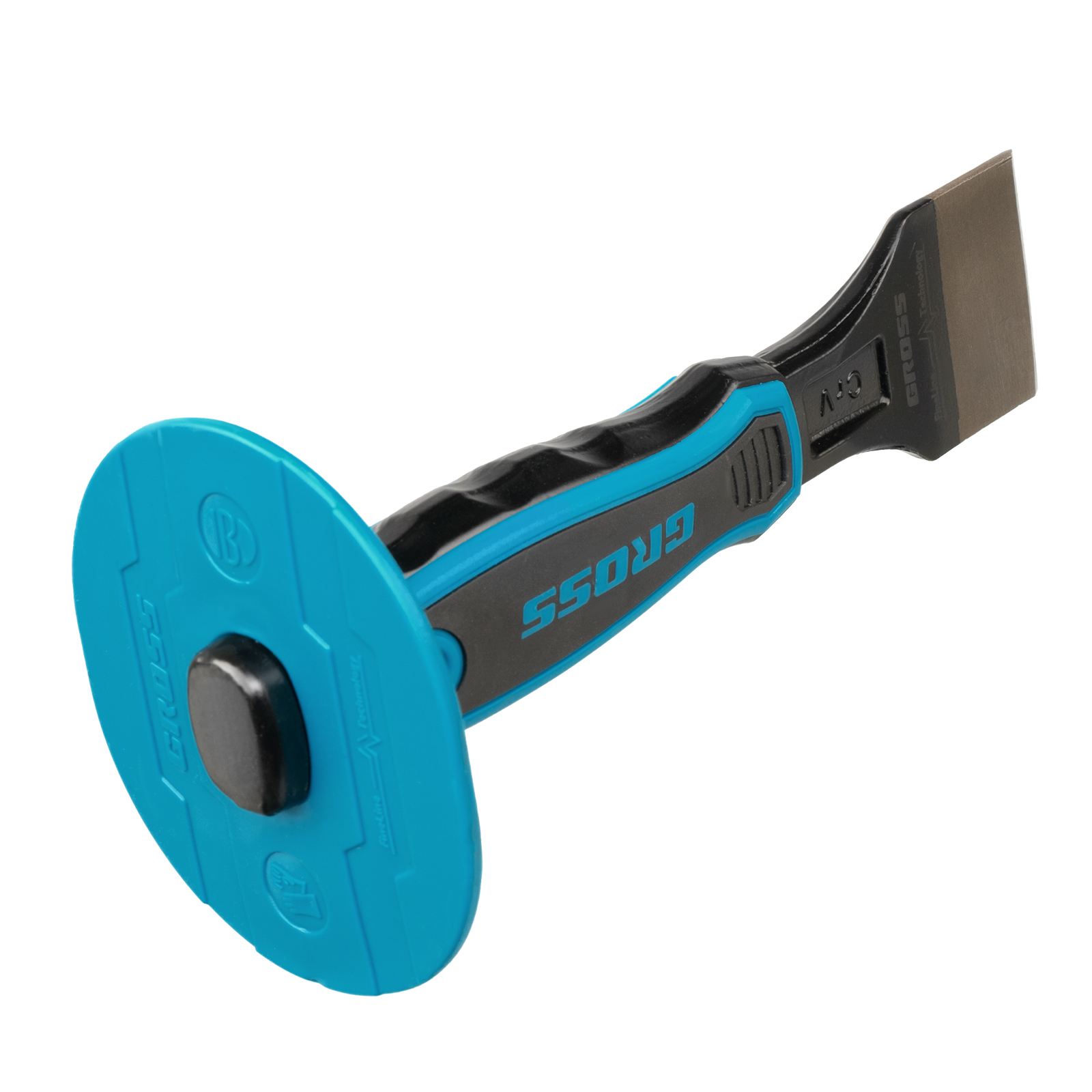 Зубило-конопатка Gross 18714 размером 200 х 45 мм-3/4 дюйма — ручной режущий инструмент, работающий под ударным воздействием молотка или киянки. Рассчитано на работу с деревянным срубом, плиткой, камнем, кирпичом. Используется для запечатывания швов, монтажа утеплителя в деревянных постройках, демонтажа облицовки и решения других задач.