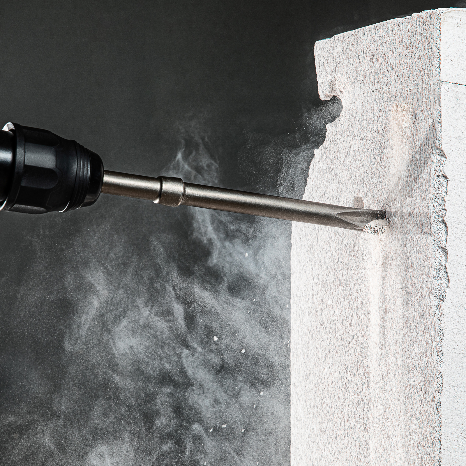 - Продуманная конструкция — хвостовик не заклинивает в патроне перфоратора.