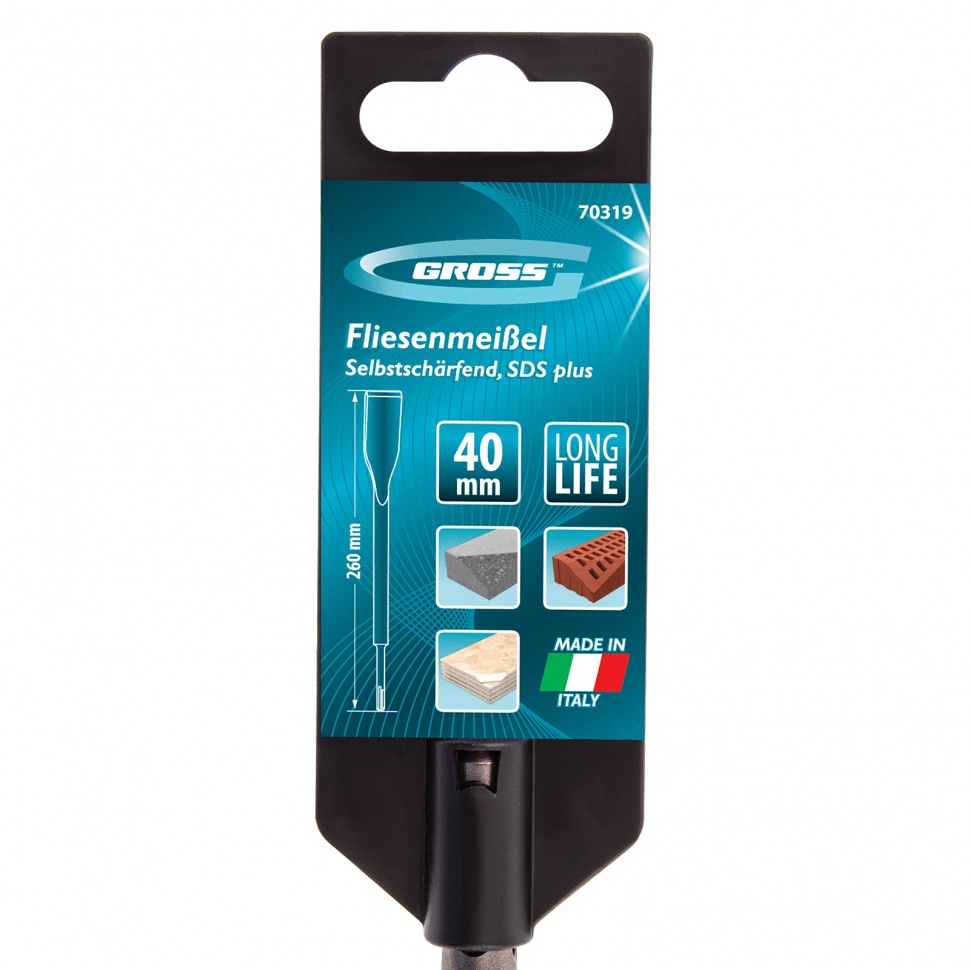 Плоское изогнутое зубило Gross 70319 размером 40 х 260 мм устанавливается на перфоратор с патроном под хвостовик SDS PLUS. Рабочая часть изогнутой формы позволяет эффективно демонтировать старую отделку, создавать углубления в бетоне, кирпиче и камне. Зубило используется как частными мастерами, так и профессионалами для проведения ремонтных и строительных работ.